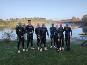 12th October -8 of our group took to the water for our cold water swim event (Sally and Nigel went last Sunday) The water was 14 degrees but we all survived and felt refreshed after the swim. No storm this week but a touch of fog and a cold early start!